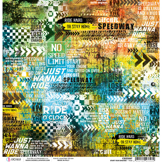 Ciao Bella textured and double-sided 12x12 "Tags" from the Start Your Engines Collection CBS097